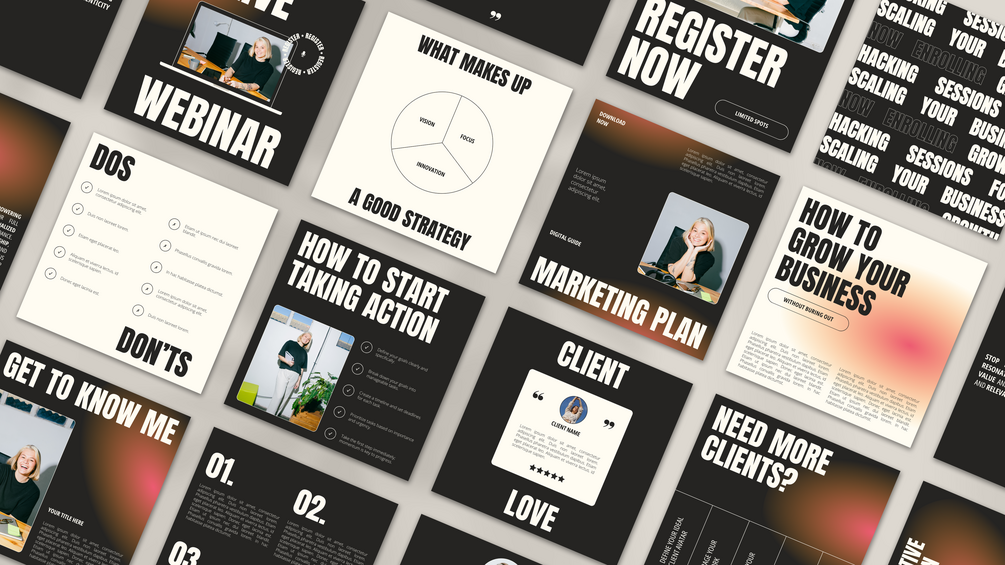 Transform your Instagram feed and stand out on social media with these striking, fully editable Canva templates that showcase a bold, magazine-inspired aesthetic. Designed specifically for Business Coaches and Service Providers.