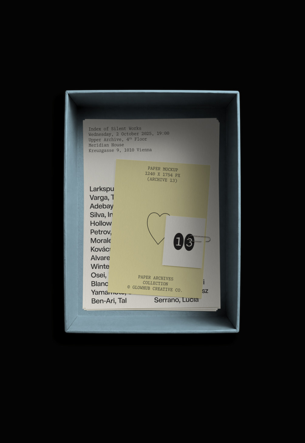 Paper Archives is a mockup collection inspired by the visual language of the late 1990s and early 2000s. Binders, plastic sleeves, vellum sheets, folders, punched paper, paper clips, and everyday office print pieces form the core of the collection. The mockups are designed to showcase print, editorial layouts, branding, and visual work in a tactile, restrained way, without distracting from the content itself.
