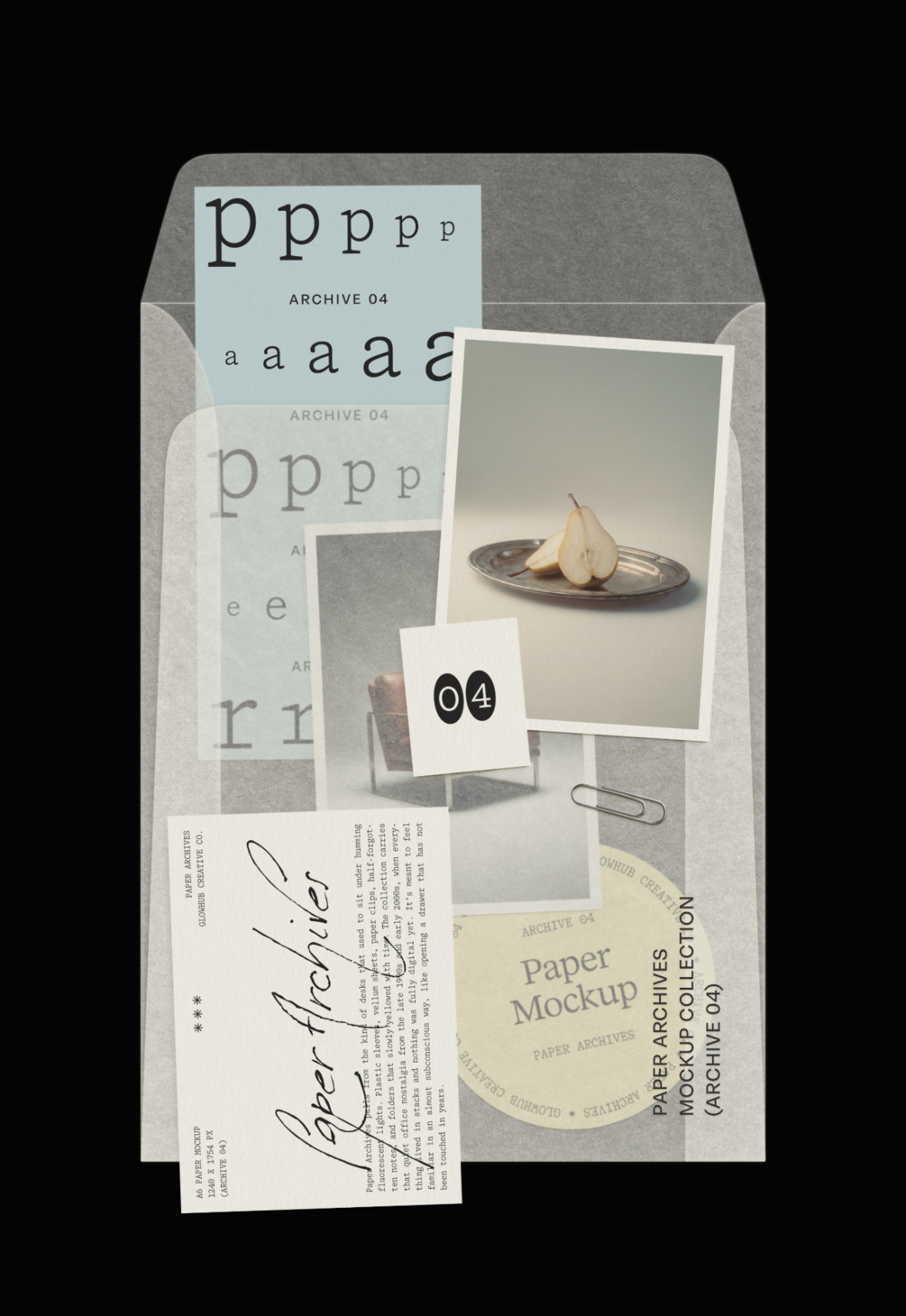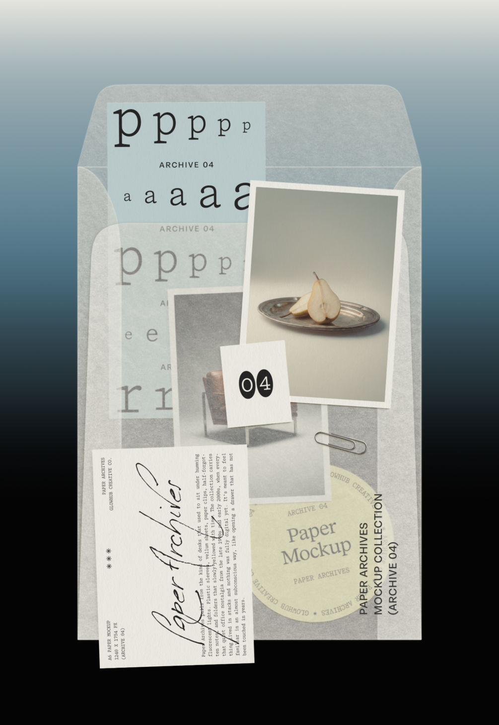 Paper Archives is a mockup collection inspired by the visual language of the late 1990s and early 2000s. Binders, plastic sleeves, vellum sheets, folders, punched paper, paper clips, and everyday office print pieces form the core of the collection. The mockups are designed to showcase print, editorial layouts, branding, and visual work in a tactile, restrained way, without distracting from the content itself.