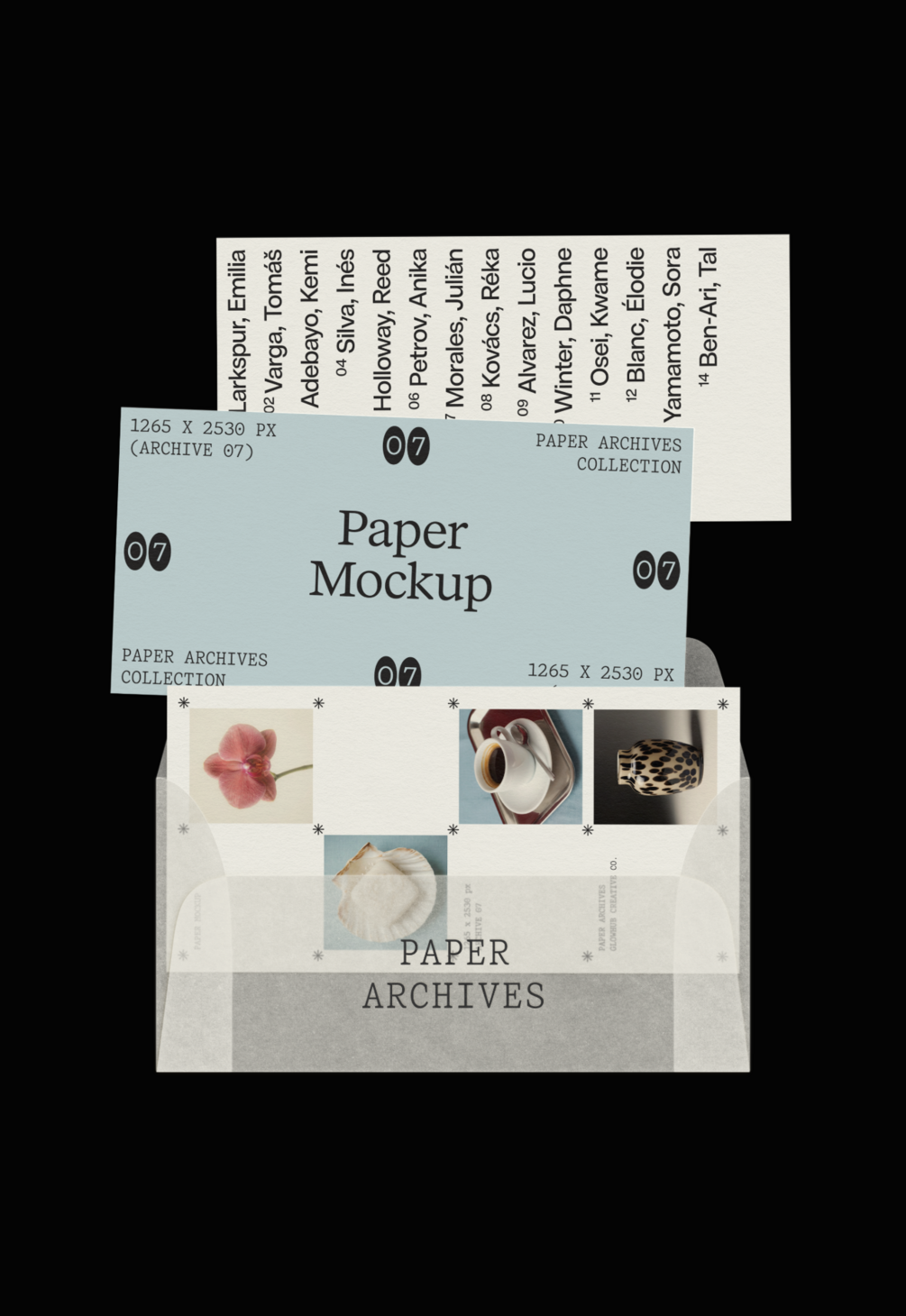 Paper Archives is a mockup collection inspired by the visual language of the late 1990s and early 2000s. Binders, plastic sleeves, vellum sheets, folders, punched paper, paper clips, and everyday office print pieces form the core of the collection. The mockups are designed to showcase print, editorial layouts, branding, and visual work in a tactile, restrained way, without distracting from the content itself.